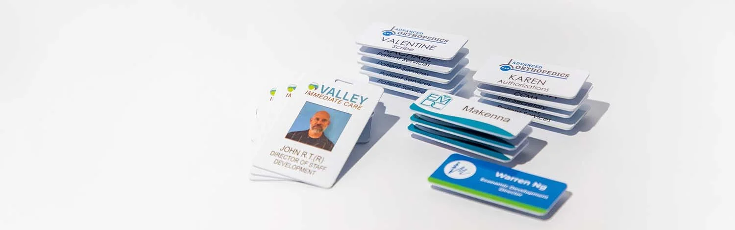 Whether you're outfitting a single front desk or an entire team, we can help you create custom name badges that look great, wear comfortably, and represent your business well. Ready to badge up your team? Let us print something that makes a great first impression.