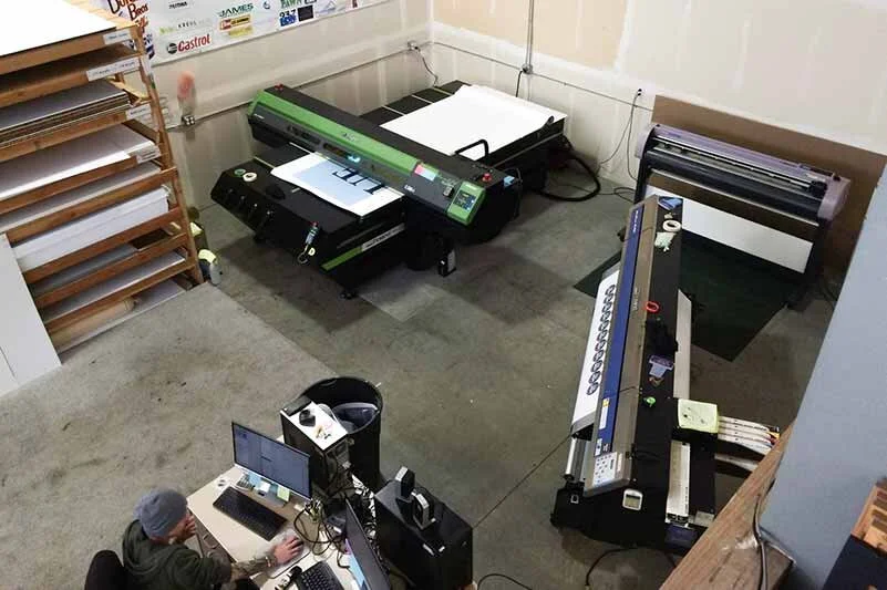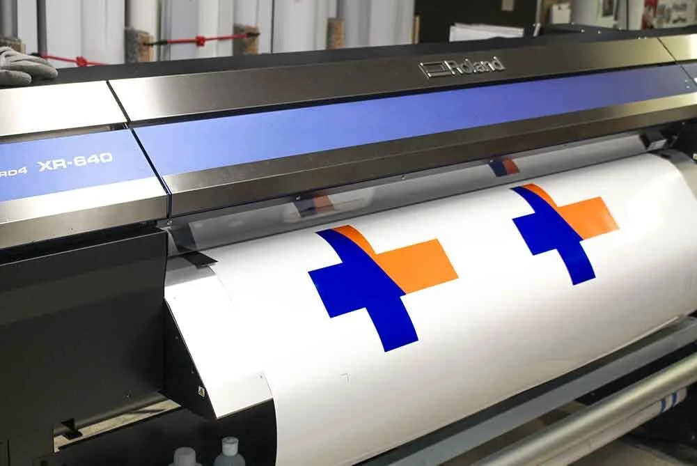 The star of our roll to roll department is our Roland XR-640. We use roll to roll printers to run vinyl and banners.